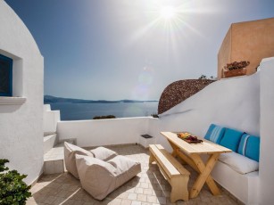 Blooming on the very edge of the caldera Sundance villa overlooks the volcano and the Aegean Sea....
