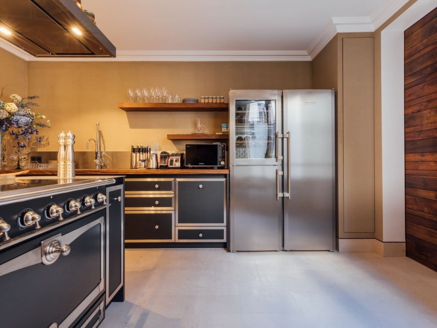 This 3 bedroom 3.5 bathroom apartment occupies the full 3rd level of a fully renovated XIX building with elevator and has been redesigned by a famous luxury hotel architect with high end equipement. ( La Cornue Kitchen, Hugues Chevalier sofas, Toto toilets, Dornbracht rain showers, boffi bathrooms, Porta Romana lamps, etc...).