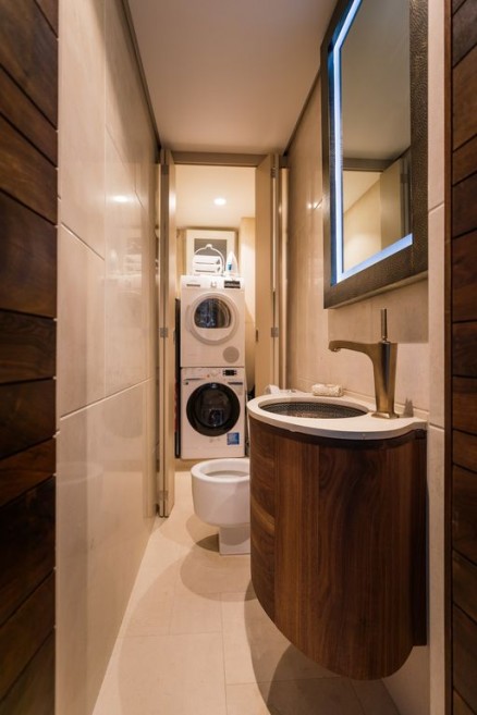 There is a laundry room with washer drier and a guest toilet.