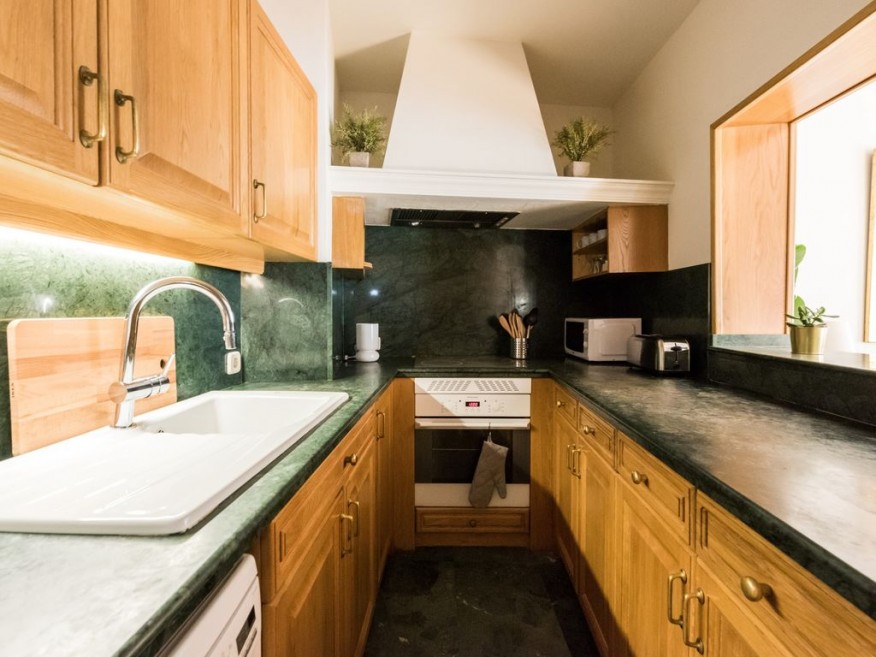 In the kitchen you could find everything necessary to make your best dishes, with separated kitchen, coffee machine, cookware, dishwasher, fridge, kettle, oven, microwave,...