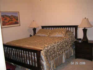 Beautiful, southwestern colors, and recently updated baths and kitchen. 10 minutes from downtown plaza. Gated condo community with sauna, gym, pool and tennis courts. Condo is turn-key furnished and equipped. Parking is next to 2 story condo building with condo located on the first floor . Condo has separate LR, DR and full kitchen--in addition, the utility room has a full size washer and dryer. Ceiling fans in all rooms compliment the central AC/Heat. Both baths are full--tub and shower.