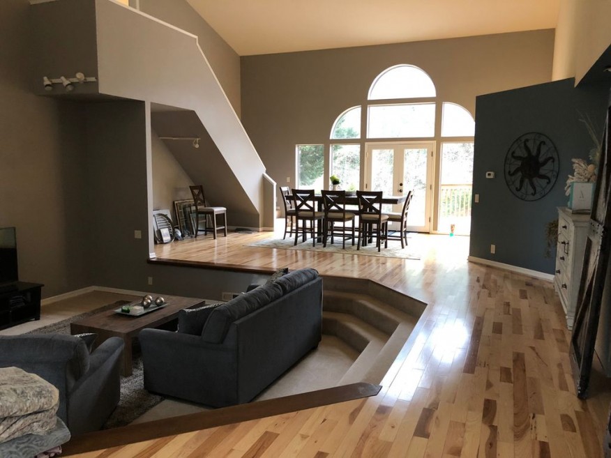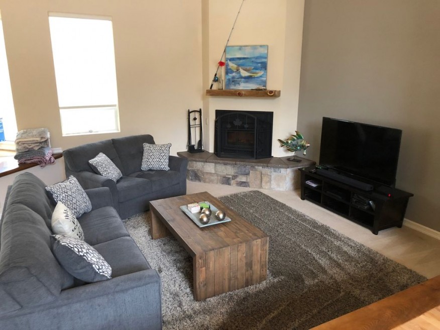 There are two dining tables inside and one outside which provides plenty of seating for families. We also have kept kids in mind with kids dishes and some toys for them. High chairs and pack n plays are available upon request as well. Board games, a jacuzzi and some outdoor space provide endless entertainment for kids and adults alike. Large 60” tv upstairs and downstairs for movie watching as well. All the rooms are equipped with basic amenities. The kitchen is stocked woth pots and pans and dishes. Some Spices and basic pantry items are provided as well.