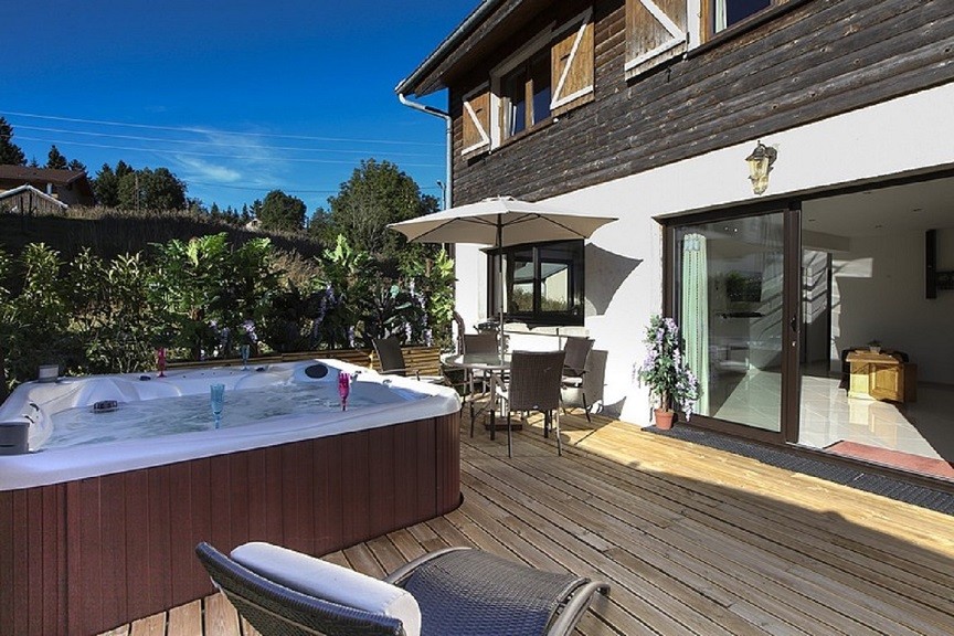 The main asset of this cottage is its outdoor spa . After your days skiing , your snowshoe outings , your hikes or your bike tours what more pleasant to relax in our jacuzzi by sharing a glass of crémant lovers or friends.