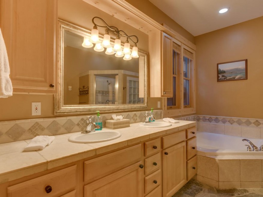 Flanking the main floor, and accessed via the living room or master bedroom, to the rear of the property, is a 1,000 square foot paver patio. This is the perfect place to dine and lounge during the summer, or soak in the hot tub after a long day of Tahoe fun.