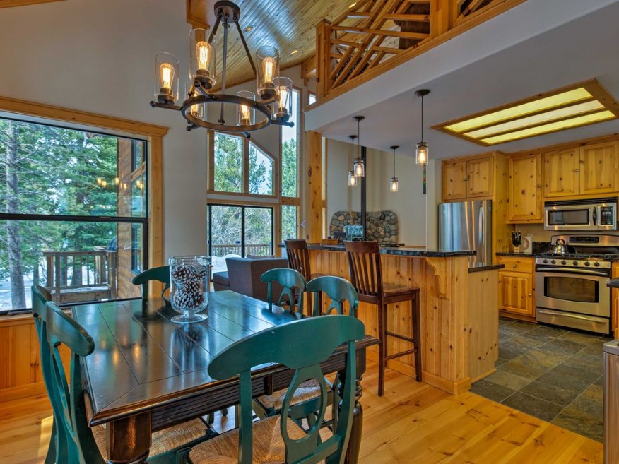 Highlighted by high ceilings, abundant windows and natural wood elements, ‘Viking Lodge’ welcomes you to the mountains with over 2,000 square feet of warm, cabin-inspired living space. Whether you’re returning home from downhill skiing or just getting the day started, the open living area is the perfect spot for some R&R.