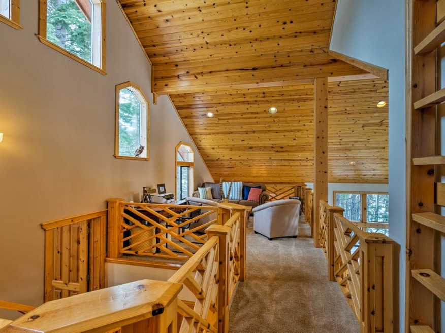 Drive down to Tahoe City for après-adventure festivities, or host your own using the home’s built-in entertainment in the game room housing a pool table and shuffleboard table. There’s even a 70-inch flat-screen cable TV and leather recliners with cup holders for the movie buffs.
