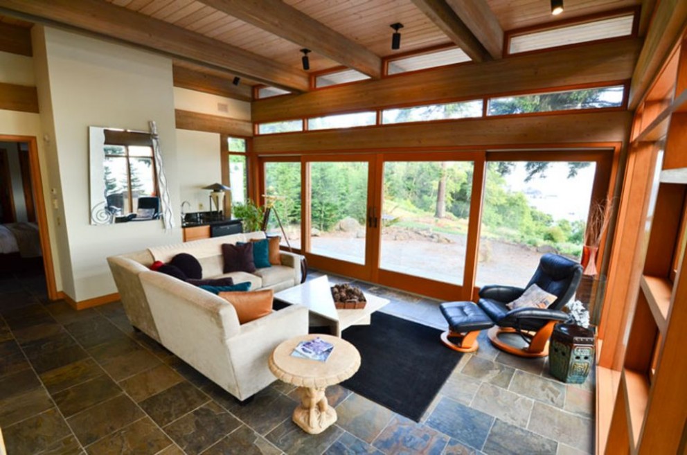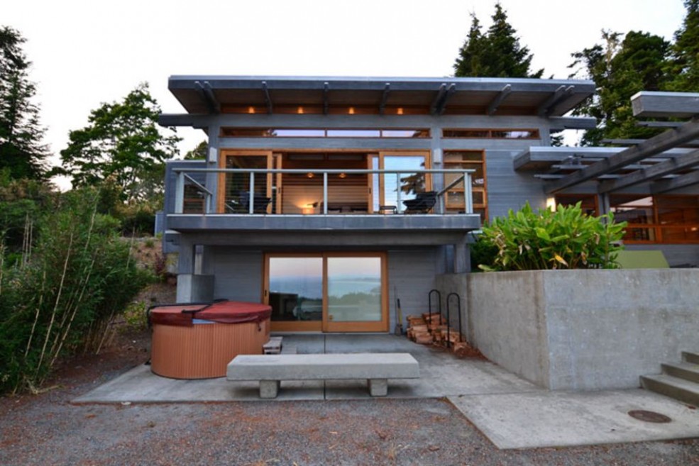 The home is equipped with a full laundry room with brand new Maytag Neptune washer and dryer, wireless internet access, high definition audiovisual systems including two large screen LCD TVs, state of the art Electrolux kitchen appliances, radiant floor heating, two gas fireplaces, and an outdoor gas barbecue. Sanctuary is a Tesla-ready home, equipped with its very own Tesla Wall Connector (high speed charging equipment for Tesla electric vehicles). Three bedrooms, one with a king bed and the other two with queen beds contain their own bathrooms and a fourth small "bunkroom" is ideal for kids with two single beds. The main master suite has a wall of glass to take in the most amazing ocean view. The bathroom features double sinks, a towel warmer rack, a walk in shower with three showerheads, and an ocean view sitting area. Large custom-made door panels in the living areas and bedrooms open indoor spaces to the outside. Huge concrete patio deck area with perimeter seating.