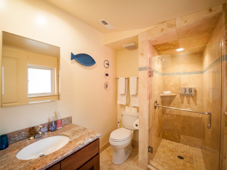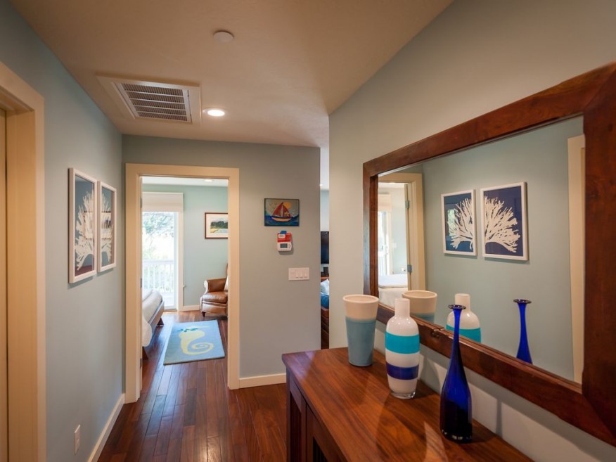 The Master bedroom is a tranquil space decorated to reflect the seaside setting. Snuggle into your plush queen size bed, complete with quilts and crisp white linens. The master bathroom has granite counters, and soaker tub. No details has been over overlooked. A private deck space is located off this main bedroom for you to enjoy.