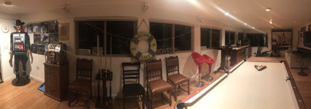 Build a fire, turn on our funky fish lights (By artist Doug Rathbun), pour a libation and enjoy. Stroll downstairs to the game room and enjoy a game of pool, or walk outside to the hot tub that is situated with the same commanding views and look at the stars overhead. This place is truly special, no doubt about it. From its unassuming exterior to the warm amenities inside, we guarantee the place will take your breath away.