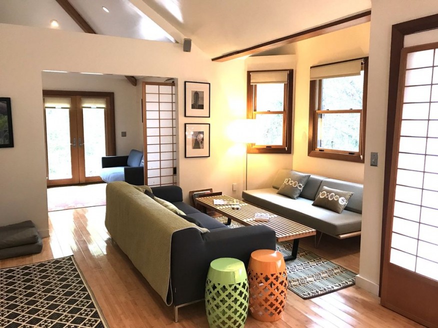 Situated on 13 acres, next to a 40 acre old-growth redwood county park and 1400 acres of undeveloped woods, this family compound consists of one main house with two bedrooms, a pool, lawn and garden, and a separate guest studio cabin with a queen bed. The separate structures make it perfect for two couples or an extended family. On our property, you have no view of human habitation and can easily imagine self-sufficient living. But in the sunny clearing, you have a swimming pool, a main house and guest studio with clean, modern style within, and a 5 minute drive to some of the finest wineries, craft beer makers, and farm-to-table eateries in the world. If you care to venture further, you can drive 20 miles past notable Pinot Noir wineries, through old-growth redwood forests, to the rugged cliffs of the Mendocino Coast and the quaint town of Mendocino for delicious baked goods and chocolate.