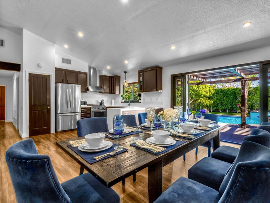 Outside, You Can Lounge At The Pool, Grill And Eat An Amazing Meals Under The Lighted Pergola, Or Spark Up Conversation Under The Stars Around The Fire Table. There Are 7 Chaise Lounge Chairs With Umbrellas That Flank The Saltwater Pool And Jet Spa. The Patio Brings Many Indoor Amenities Outside, Including An Outdoor Dining Area (seating for 8), Propane Barbeque And Bar. The Entire Garden And Palm Trees Are Softly Illuminated With Ground Lighting. Enjoy And Taste Our 4 Citrus Trees In The Backyard. Wi-Fi Located Throughout The Property Including The Backyard. Truly An Elegant And Intimate Living Experience.