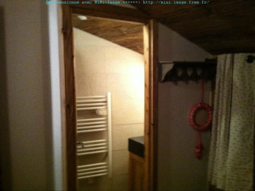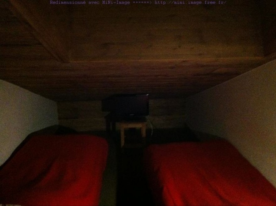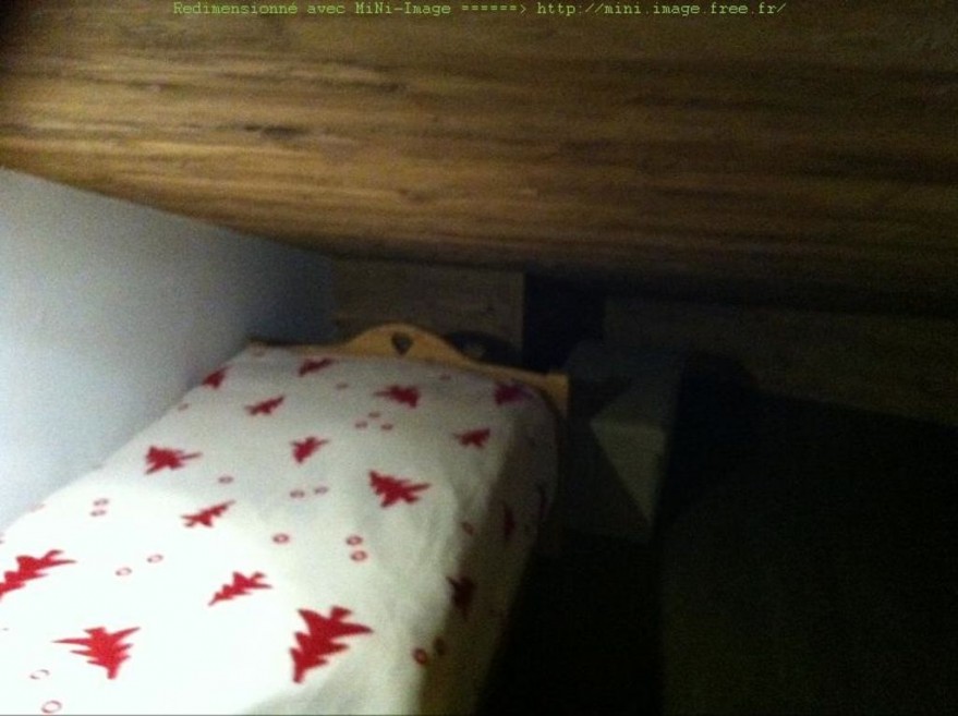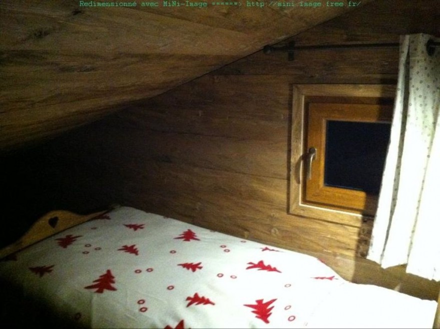 Upstairs, the wooden staircase leads to a small hall distributing, three bedrooms, a bathroom and toilet. The first bedroom has a double bed. It is lit by two windows looking over the access corridor. It has a private shower. The second bedroom has two single beds and is lit by a window overlooking the rooftops. The third bedroom has two single beds and two bunk beds and is lit by a large skylight. These last two rooms use the bathroom upstairs.