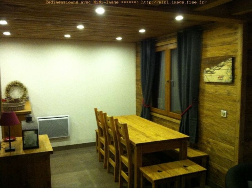 Down the hall is the main room, consisting of a living room, a kitchen and a dining area. The living room has a large sofa with two chairs and ottoman. On the right of the living room there is a flat-screen TV and a stereo mini arranged on a small wooden furniture chain. The living room provides access to a balcony with a beautiful view of the slopes of Planchamp the bour-morel and valley, mountain Creve Gollet head and the neck.
