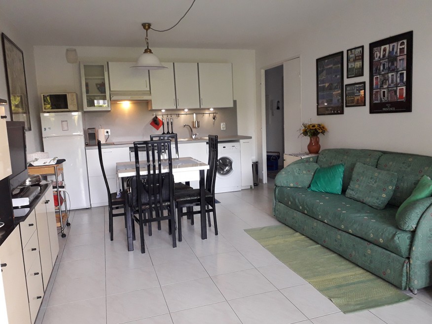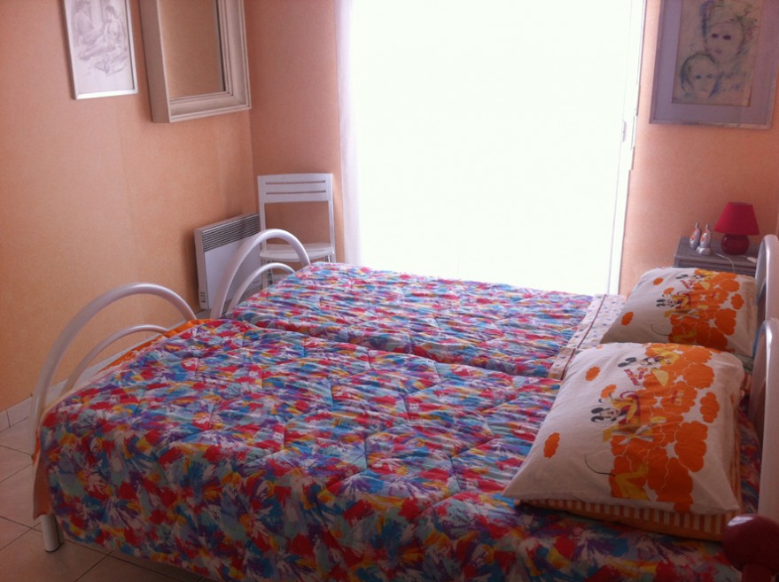Cote d'Azur a 6 km de Cannes, appartement 3 pieces, 2 chambre pour 4 personne, sejour coin couisine , couchage 2 lit dans canape, beau jardin de 80 mq equipe avec table et chaise , salle de bain avec douche wc et bidet + salle d'eau avec lavabo.