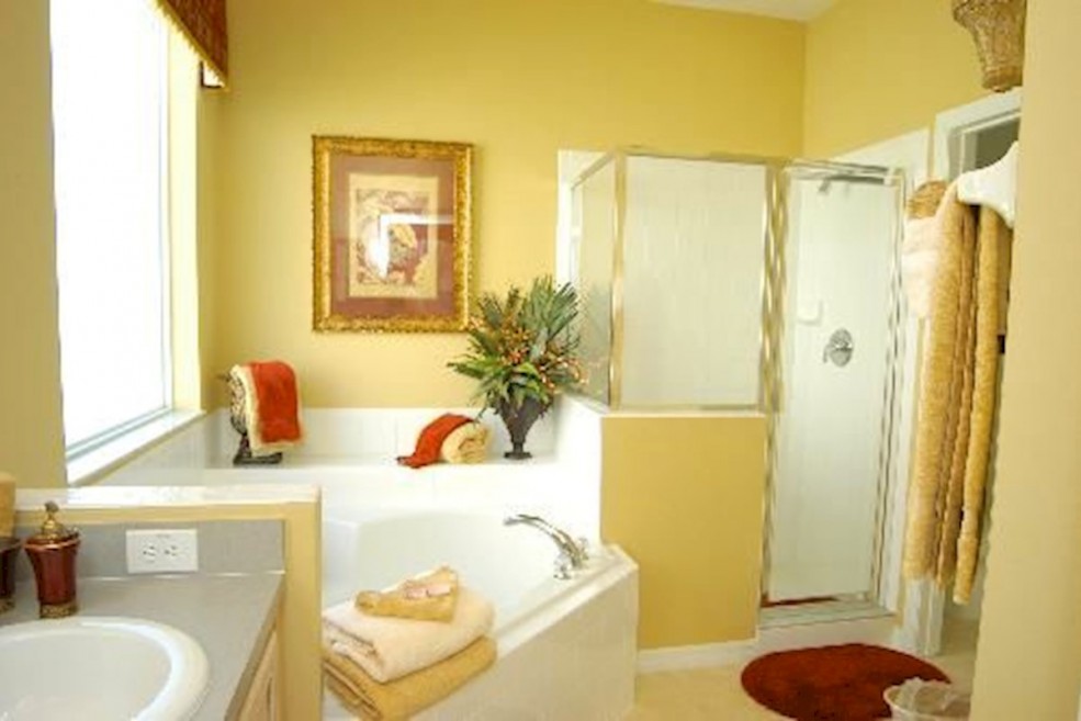 An en suite master bathroom has his/ hers vanity unit, garden tub, separate walk in shower.