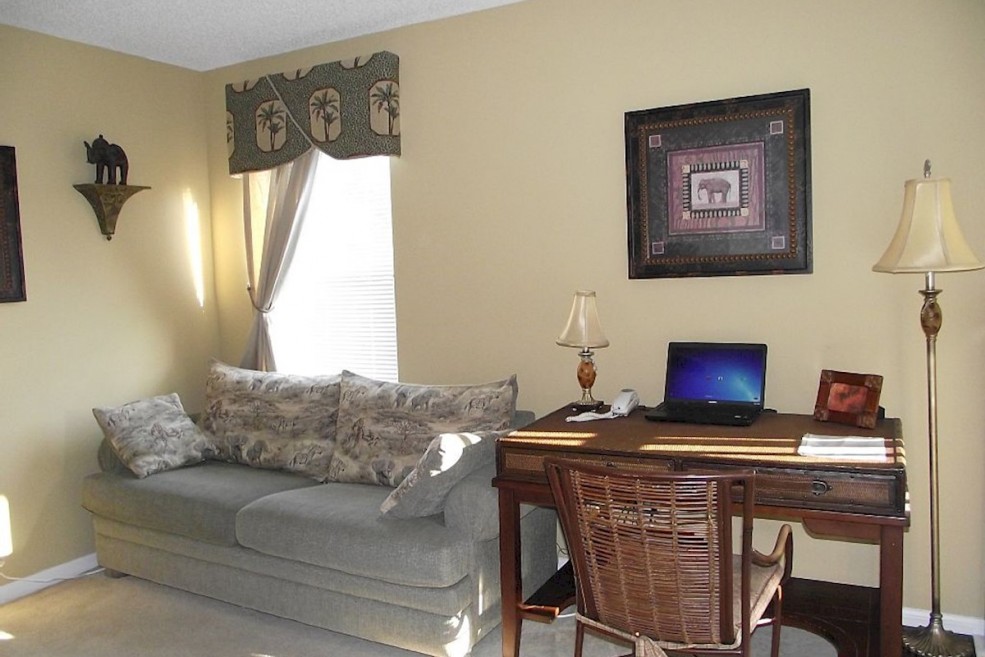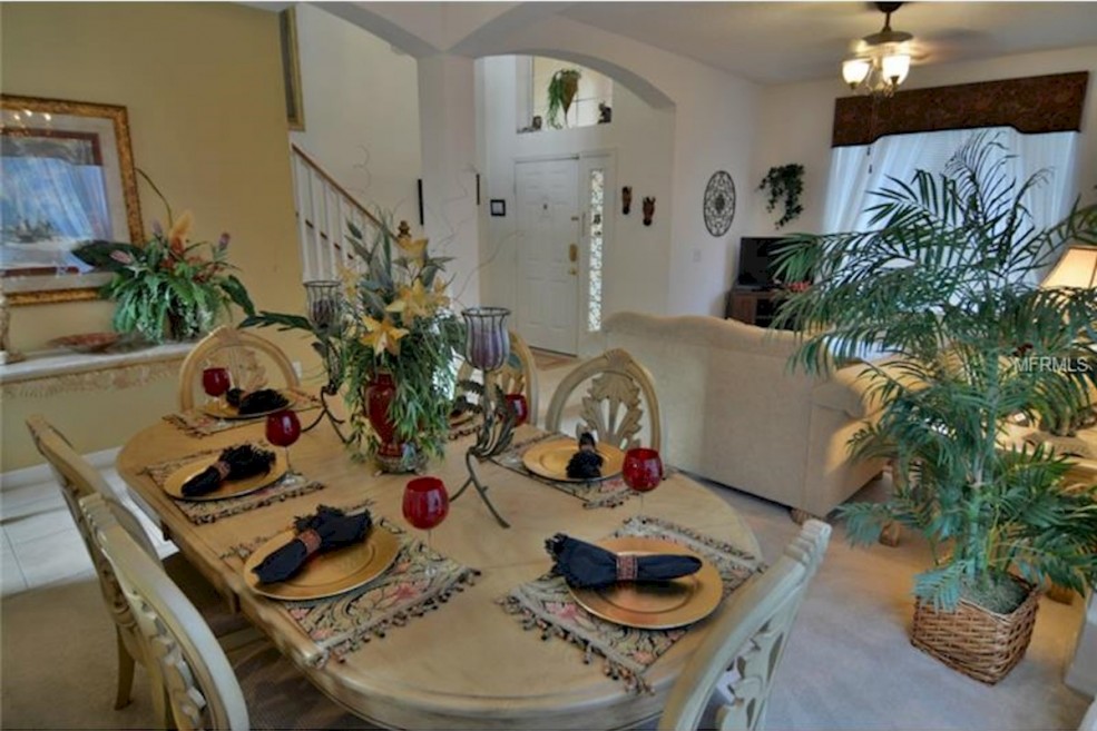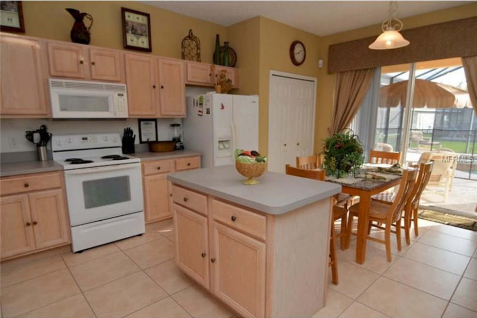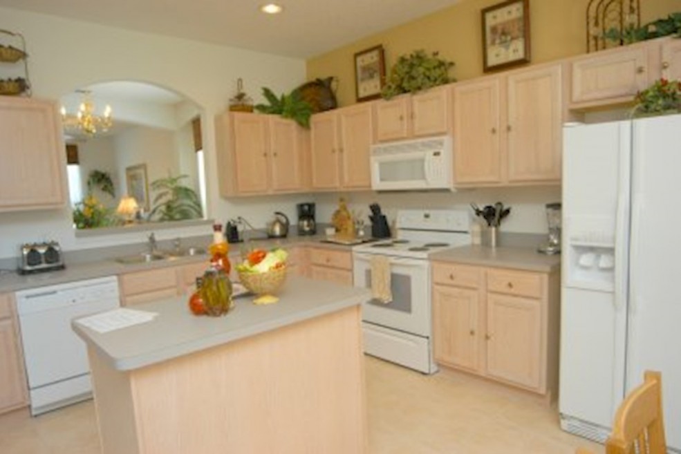 Kitchen; the informal breakfast area seats six and also has patio doors leading to the pool ( it also provides a good view of the T.V in the family room!) Equipped with; microwave, dishwasher, fridge/freezer with ice maker, Coffee maker, blender, all cookware. The kitchen has an archway that provides easy food access to the formal dining area.