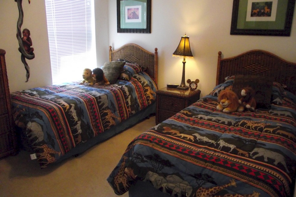 Toy Story twin: Disney themed room with twin beds, especially for our younger guests. Ceiling fan, cable T.V are provided.