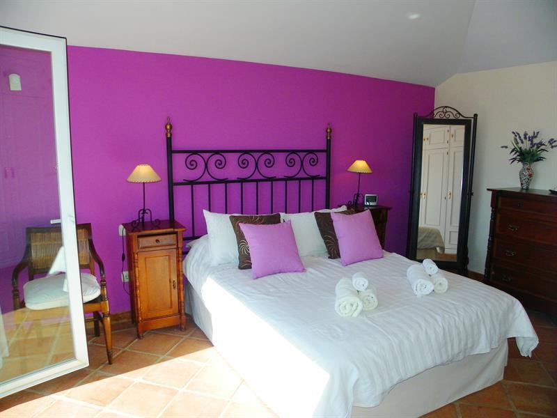 Steps beside the fireplace are leading on to the upper floor where you will find the master bedroom and the roof terrace. The master bedroom is very spacious and offers large window front with direct seaviews and access to the sunny terrace. The master bedroom offers large double bed and spacious en-suite bathroom with double bassin, WC, bidet, bath and separate shower.