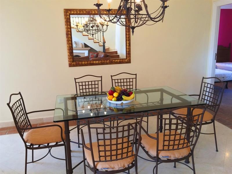 In the living room there is also the spacious dining area with a large glass top table with 6 chairs.