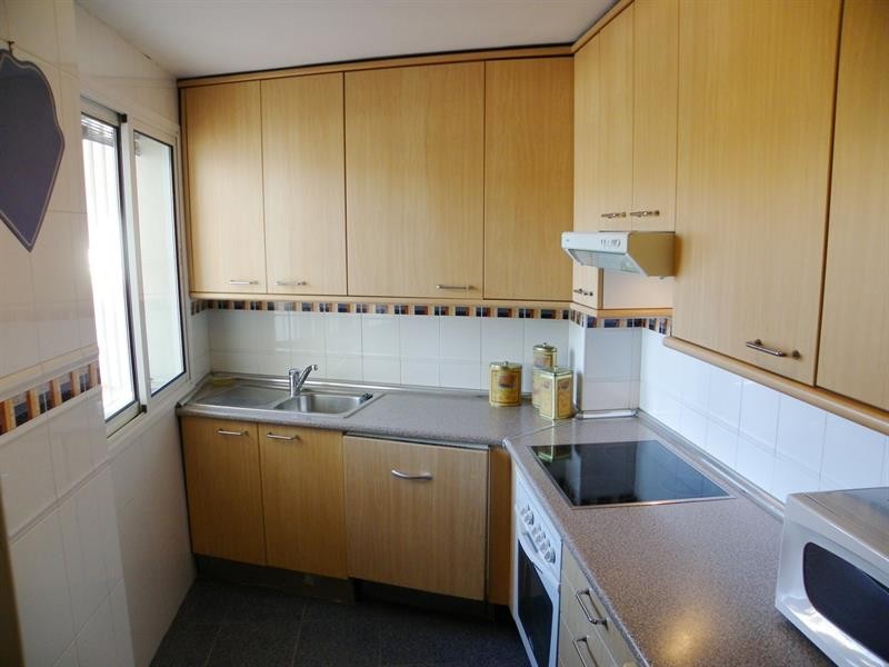 The large living room has a dining area and a comfortable living area with a TV-corner with 3-seater and 2 seater-sofas and 2 comfy armchairs. The bright living room has direct access to the spacious terrace. When you seat on the sofa, you enjoy free panoramic seaviews! On the enormous terrace infront of the living room with over 80m² thereare 2 outside dining tables where you can enjoy your breakfast or dinner in the sun listening to the sea! Further here you will find an comfortable outside lounge furniture set for 5 people, 2 sunloungers and a small BBQ. The terrace is partly covered, so there is always plenty of master bedroom has direct access to the terrace and offers frontal sea views. This bedroom offers very large double bed with 180X200 cm and an en-suite bathroom. When you lie on the bed, you overlook the open sea. There are 3 more bedrooms, so the apartment can suite up to 8 people in total! The second and third bedrooms do offer 2 single beds and the fourth bedroom offers a double bed with 150X200 cm. (4.bedroom open only with occupancy of 7 people and more). This 3 bedrooms share a bathroom on the landing. The kitchen is fully equipped and is located just beside the entrance hall.