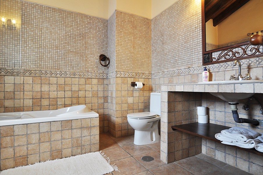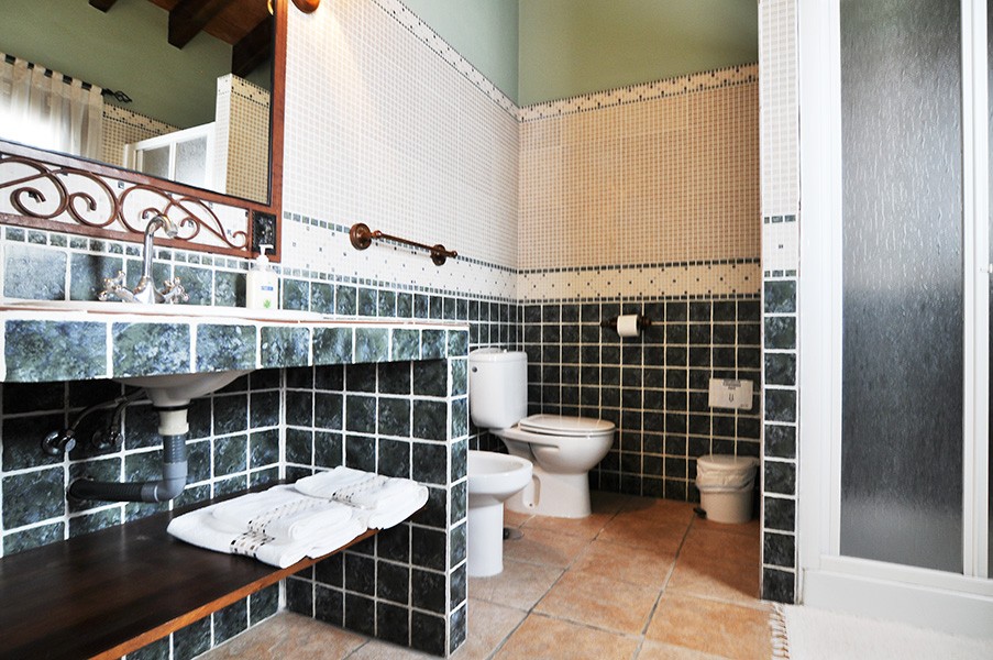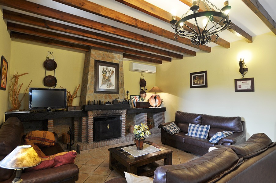 The kitchen is fully equipped with: microwave, oven, dishwasher, washing machine, coffee maker, toaster, juice extractor, crockery, cutlery, glassware, etc; and the dining room has a large wooden rustic table where 14 people can eat widely, has three large sofas, a low table in the middle and television with satellite. The living room measures 75 square meters approximately and has a large fireplace that gives place to a totally comfortable environment.
