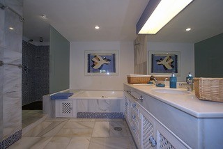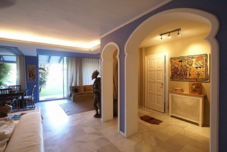 On the ground floor, there is the garden with private pool, decorated in Moroccan style porch. rockeries with jasmines and bougavillas and seasonal plants and barbecue area with gazebo.