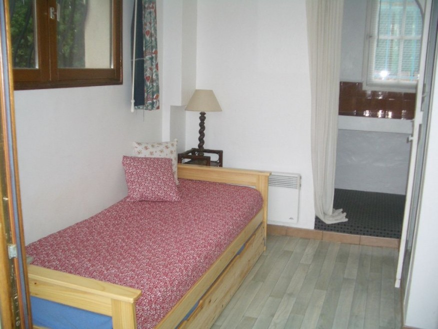 One bedroom with two single beds