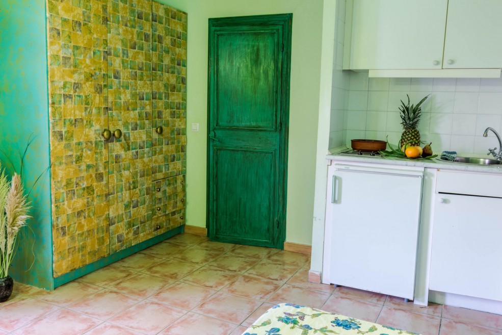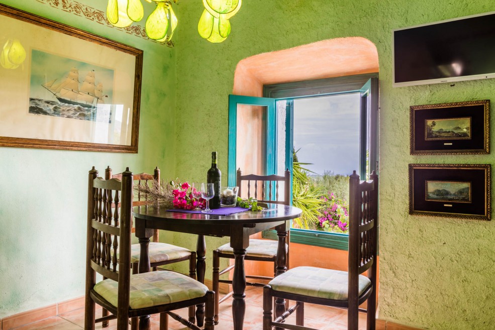 This small apartment with 20 square meters provides located on the first floor of the main building is very cozy and offers a great view over the estate, the countryside and the sea. English design elements and mahogany furniture gave it its name.