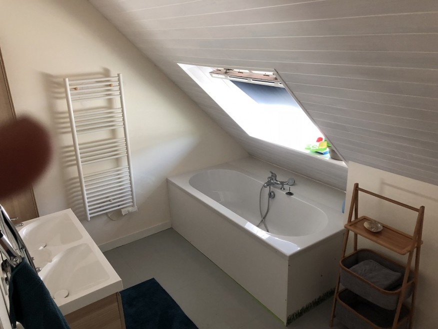 2 Bathrooms + 2 Toilets: One shower room on the ground floor, one bathroom with a bathtub upstairs