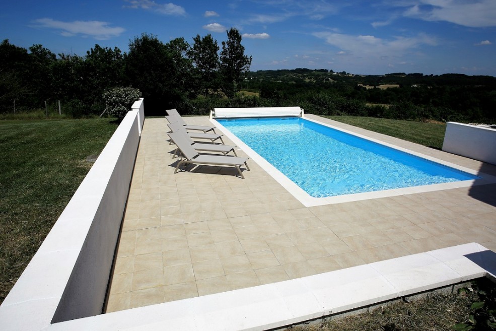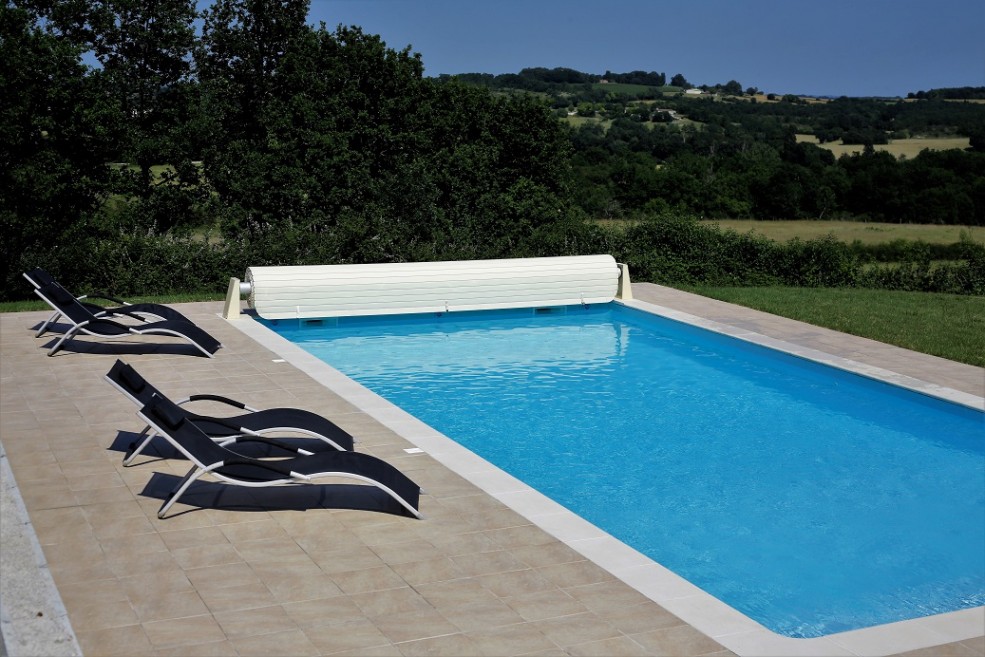 Sunbeds by the pool and a spacious terrace with options for sun or shade