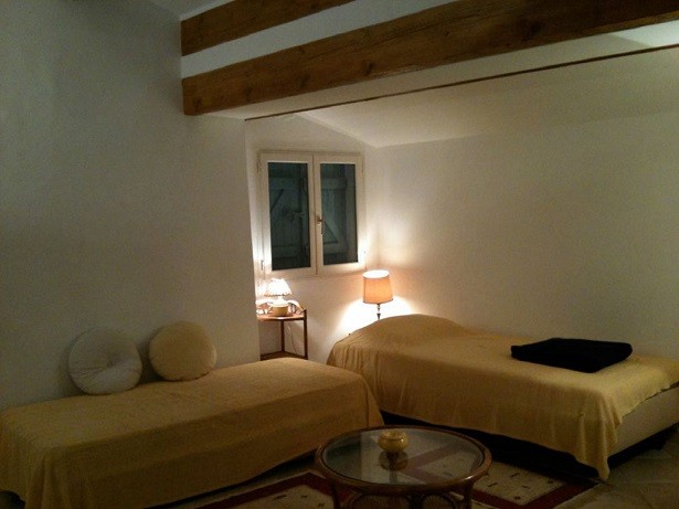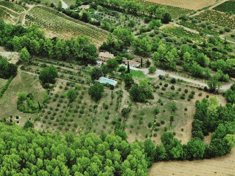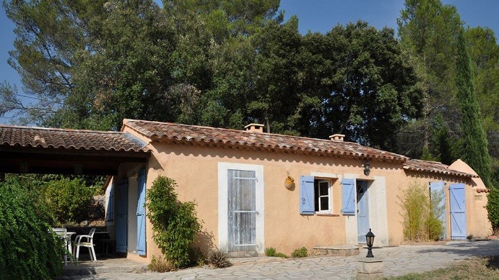 Petit mazet indépendant pour 4 personnes maximum (58 m 2 ), en pleine campagne vallonnée, aucun vis-à-vis, sur terrain de 4 ha planté d’un petit bois de chênes et pins et de 200 oliviers;