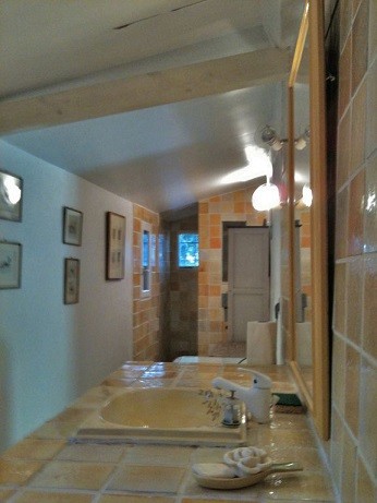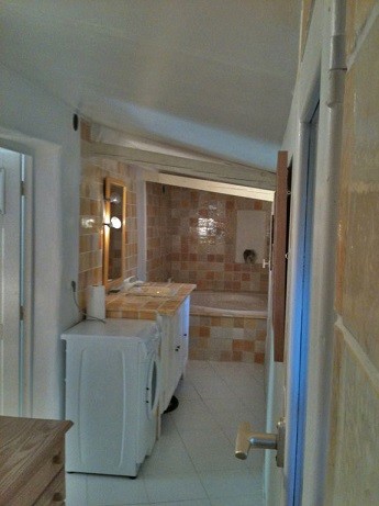 1 salle-de-bains : douche à l’italienne, baignoire d’angle, vasque avec lavabo, toilettes et lave-linge