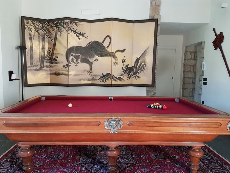 In the villa there are five luxurious rooms equipped with all comforts and four lounges with piano and billiards, dining room and reading room with fireplace, in addition to the medieval hall.