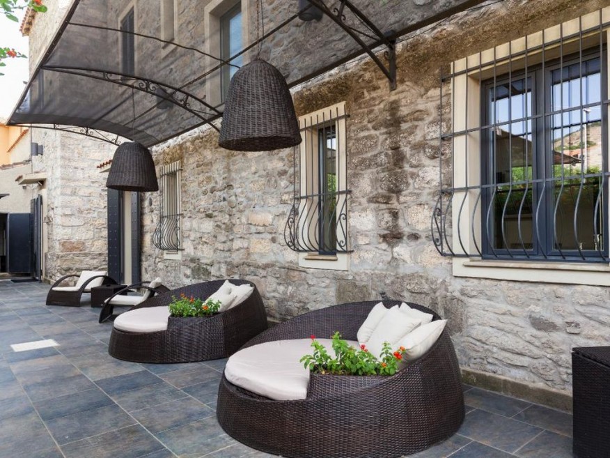 Surrounded by greenery with lawns and gardens both in the front and in the back, there is a circular pool to allow guests to cool off during the hottest periods.