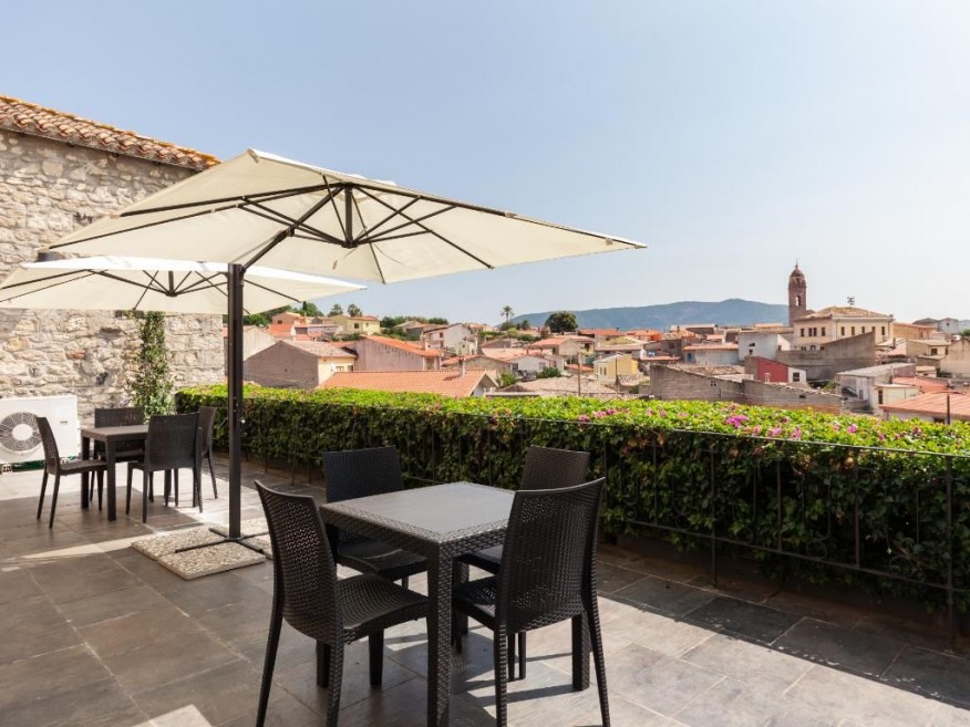 The Villa is situated on the slopes of the Giara plateau. The fame of the area is mainly linked to its wild and uncontaminated beauty, inhabited by very rare animals. The area is in fact frequented by the only herd existing in Italy and in Europe of wild horses better known as "Giara horses". Of small dimensions, their origin is shrouded in mystery, particular that enhances the charm of these robust and peaceful animals. All this environment is dominated by cork oaks. Unique feature of these trees is their "crooked posture". Almost all of them, in fact, appear to be inclined because of the force of the wind that blows impetuously and undisturbed for almost the whole year, managing to bend the plants, even when small and resting them over the years to an almost oblique position.