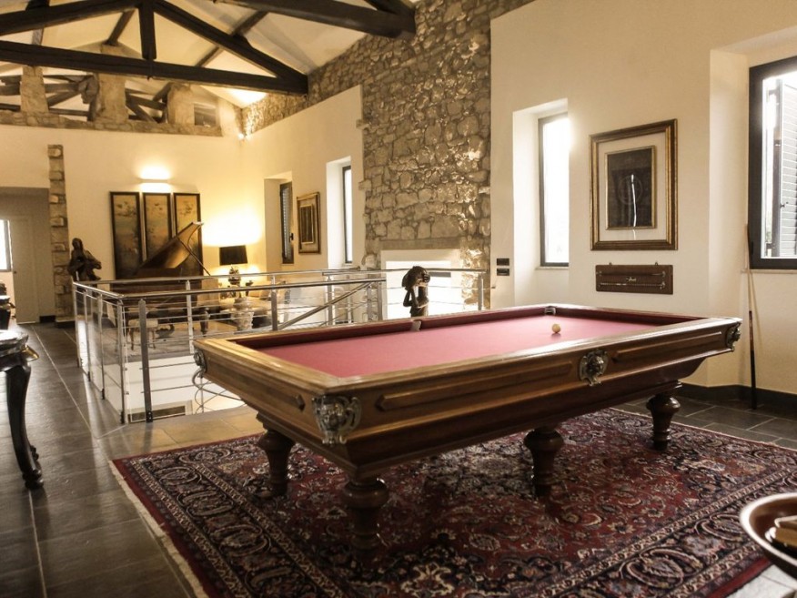 In the villa there are four lounges with piano and billiards, dining room and reading room with fireplace, in addition to the medieval hall.