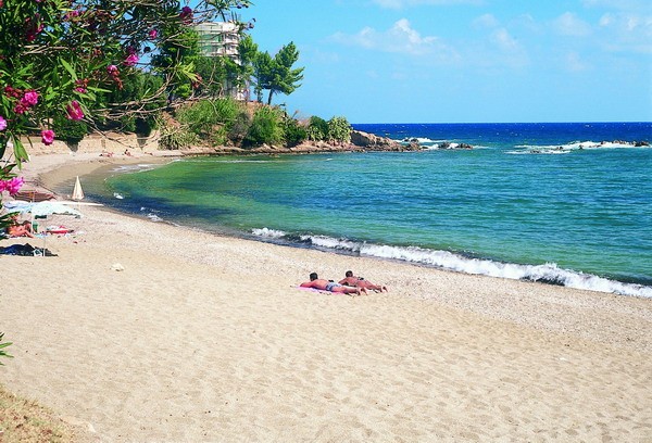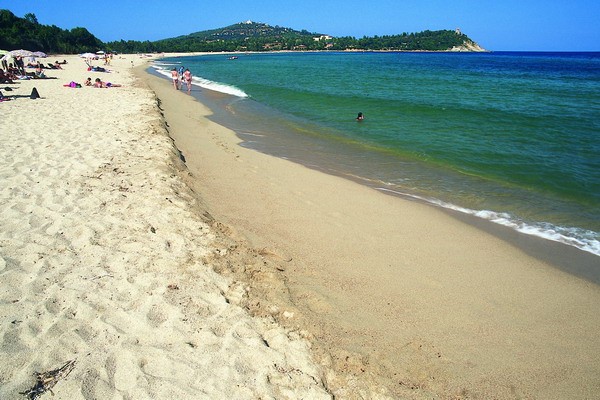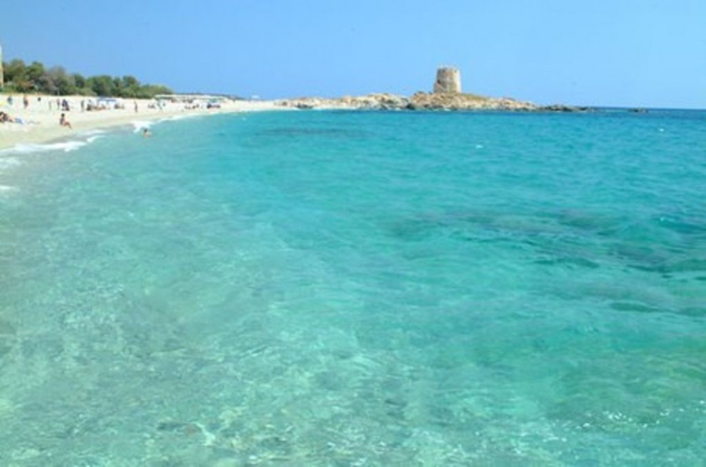 The beach to the left of the tower is called 'Mari de is Ominis', consisting of course sand-colored and surrounded by a pleasant pine forest. The beach on the right is called 'Mari de is Feminas' made of small gray pebbles and fine sand, crystal clear waters which extend down to the beach of 'Sa Marina'.