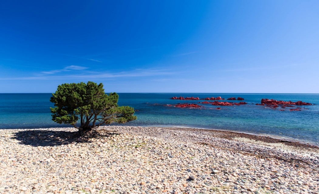 Torre di Bari Beaches: A rocky headland on which stands a Spanish tower divides it into two parts, in the post-war period it was visited by men and women separately: the north part, yellow-ochre-colored sand similar to rice, was once called Mari de is ominis and the south part, gray pebbles and fine sand, was instead called Mari de IsFeminas.
