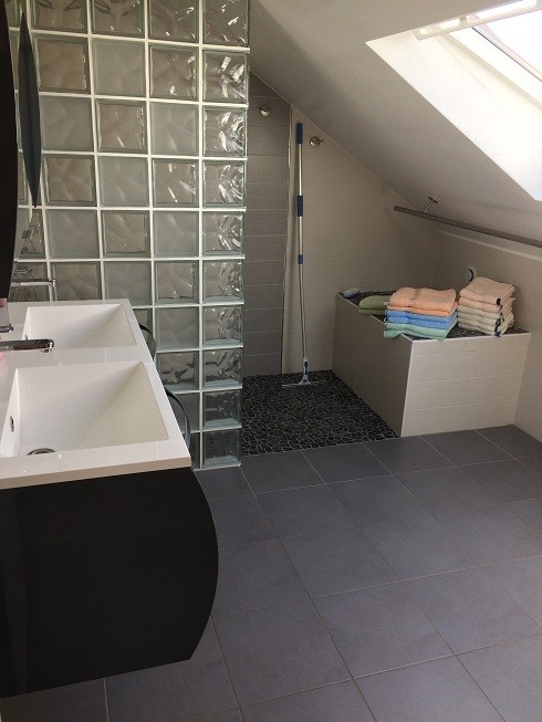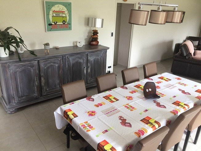 Beautiful Breton stone house with 4 bedrooms, 2 bathrooms, fully equipped kitchen, living room, living room with a total area of 160 sqm. Enclosed garden of about 250 m² with swing and slide and large terrace with awning and garden furniture, barbecue available. Renovated house in 2012 located in a quiet area, close to downtown and shops and beautiful white sand beaches.