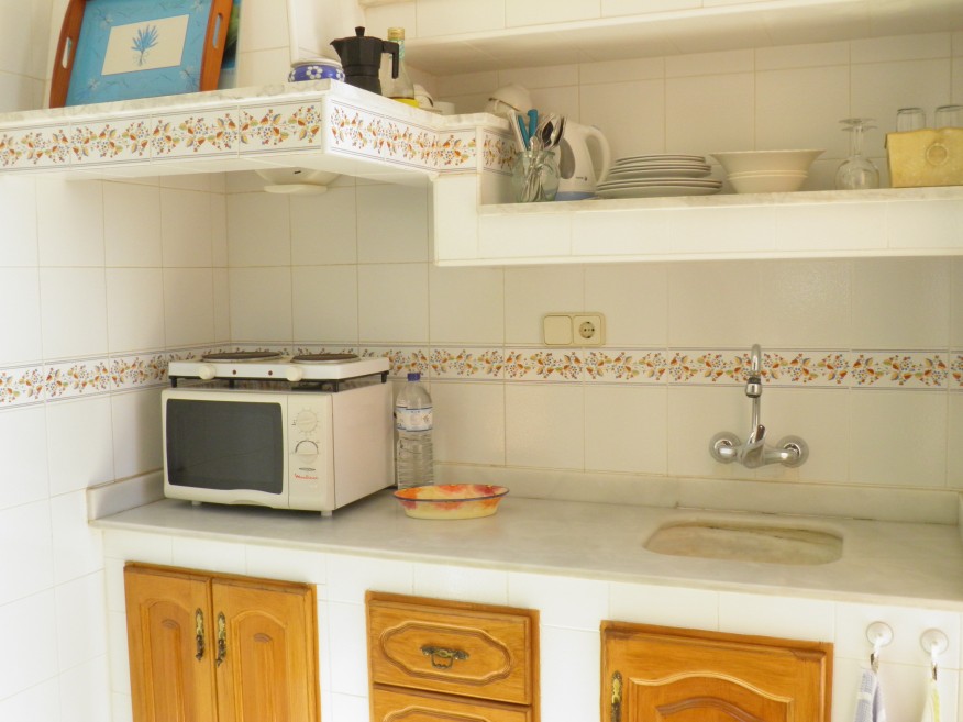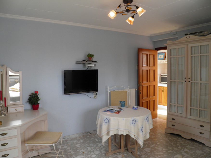 Large room with double bed or twin beds with separate eating area, bathroom with bath, well equipped separate kitchenette, terrace equipped for outside dining and sunbathing, covered barbecue/paella area.