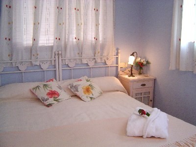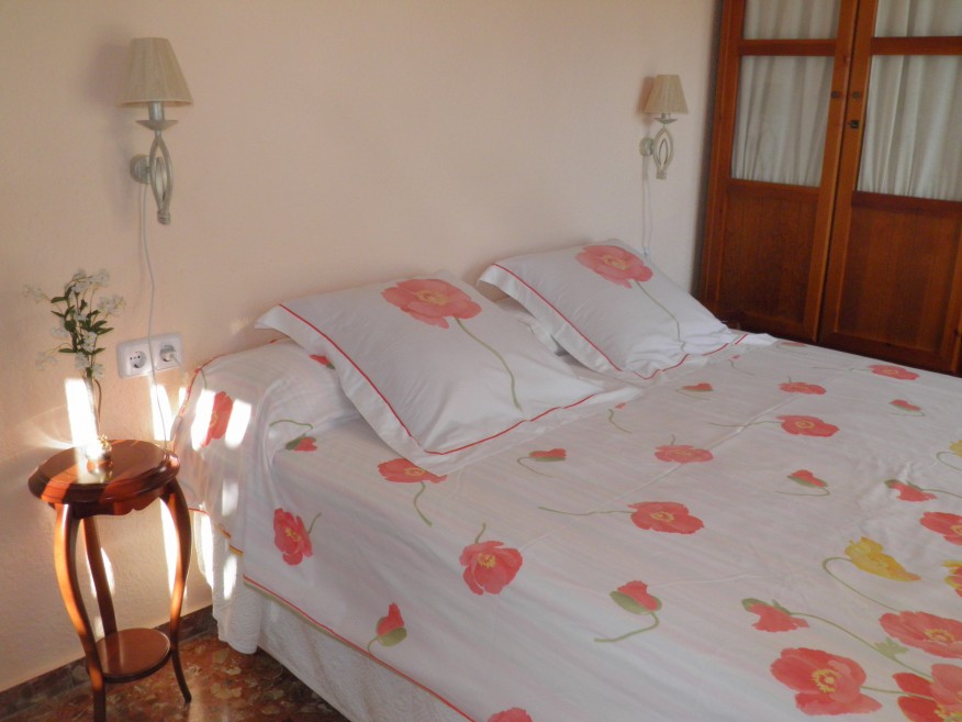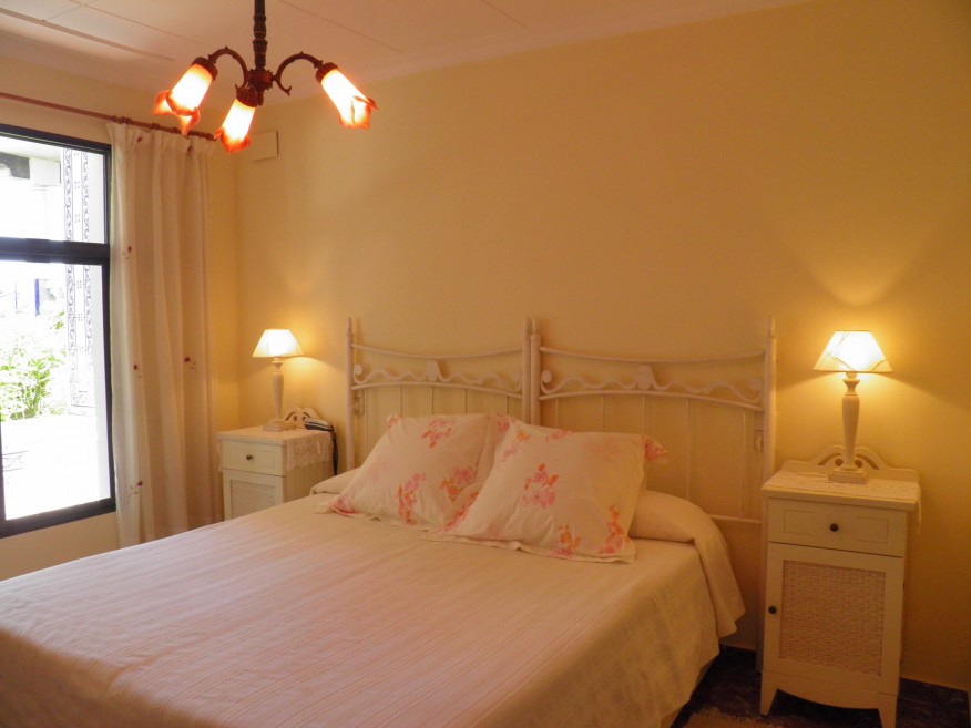 Two double bedrooms with double beds or twin beds, bathroom with spa bath (plus Roman Jacuzzi), living-dining room with fireplace, a leather sofa with extensions, a twin folding bed, a library of over 2500 books, well equipped kitchen, BBQ / covered paella area and covered terrace furnished for dining with views over the garden and of the castle.