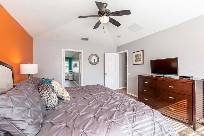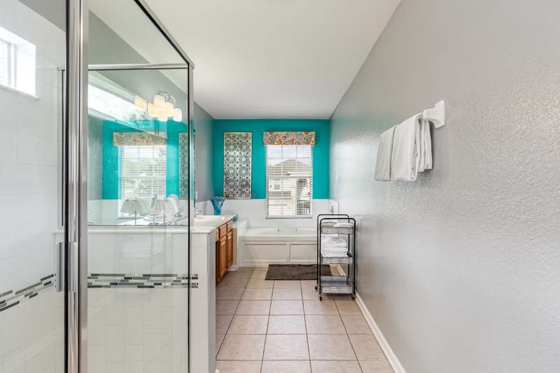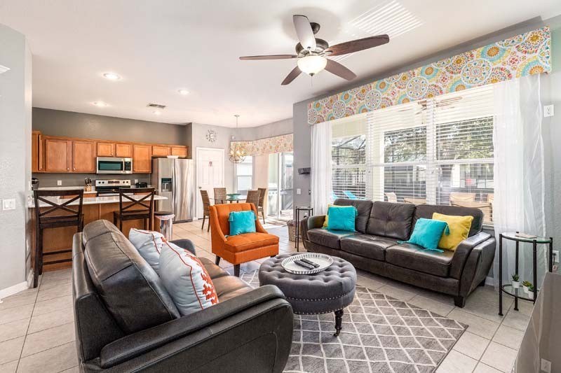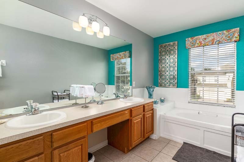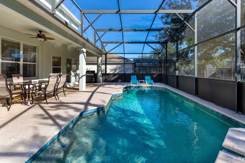 Recently updated and refurbished, our villa is regarded as at the very top for a luxury villa at Windsor Hills. Its location can’t be beat. The villa’s guests are across the street from Windsor Hills’ largest playground and a short 2-3 minute walk to the new community splash pad and water slides.