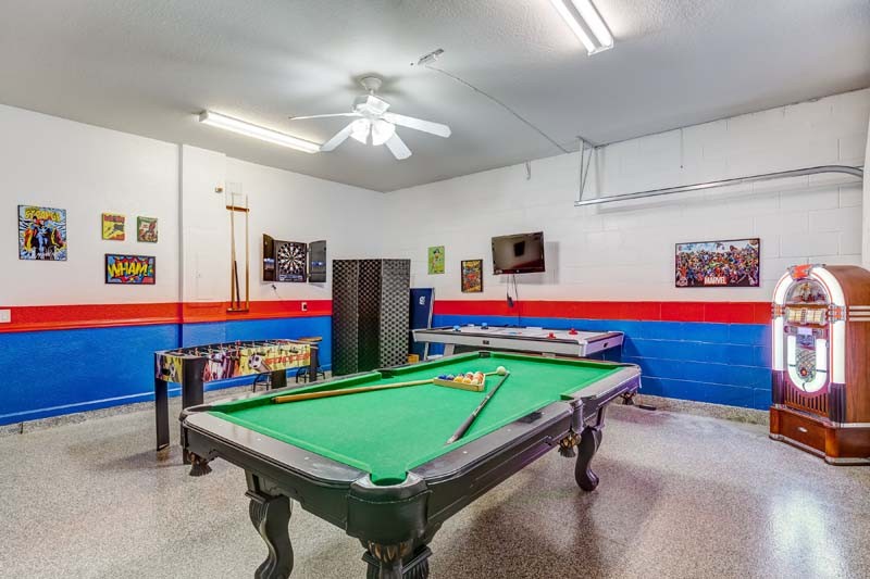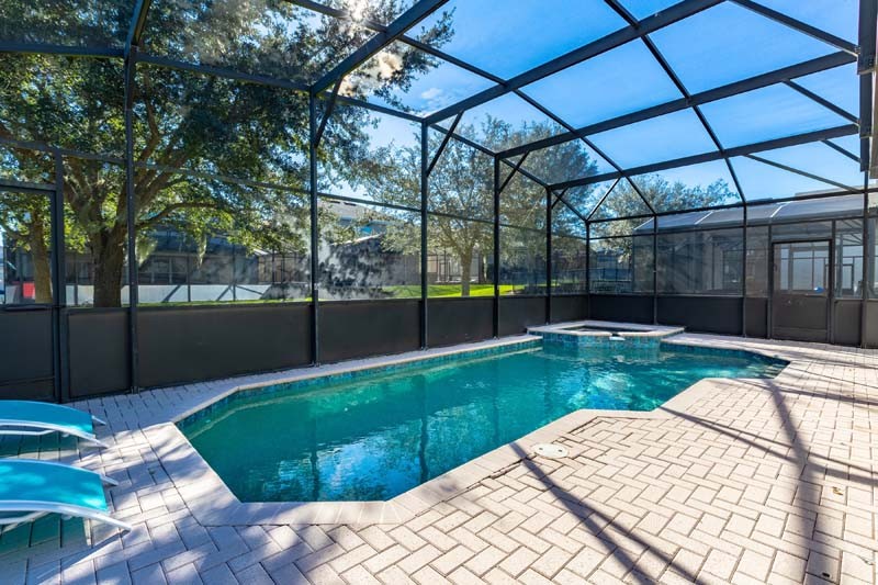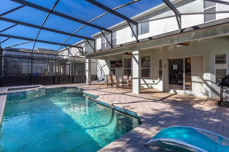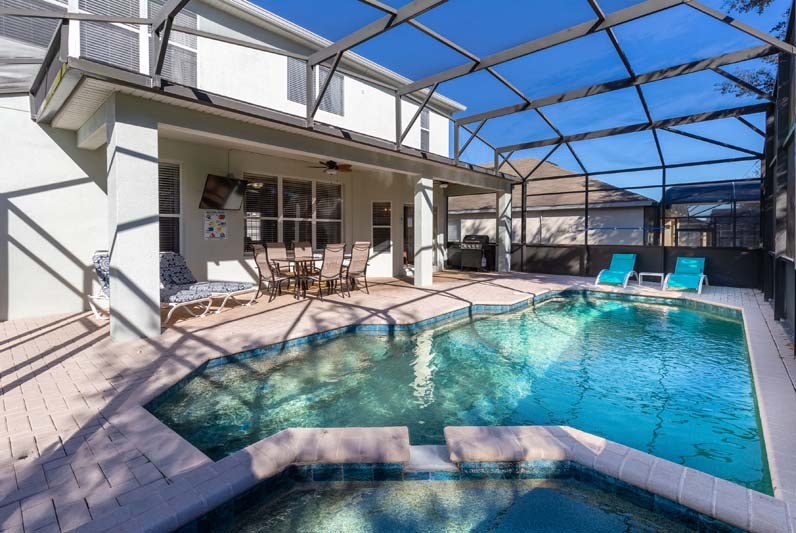 Magnolia Blossom Villa, our stunning, fully air-conditioned home,is perfect for families or groups seeking the ultimate in space, luxury, facilities and convenience. It boasts 6 bedrooms, each with a LCD Roku TV, 4 bathrooms (2 are fully en suite), a large open plan living area, free phone calls, free wireless internet access and a superb game room, as well as a large Pebble-Tec SOUTH FACING swimming pool with spa and BBQ to enjoy those long sunny Florida days. The family room has a large LCD smart TV and there’s also a wall-mounted Roku smart TV on the lanai for your outdoor viewing pleasure.