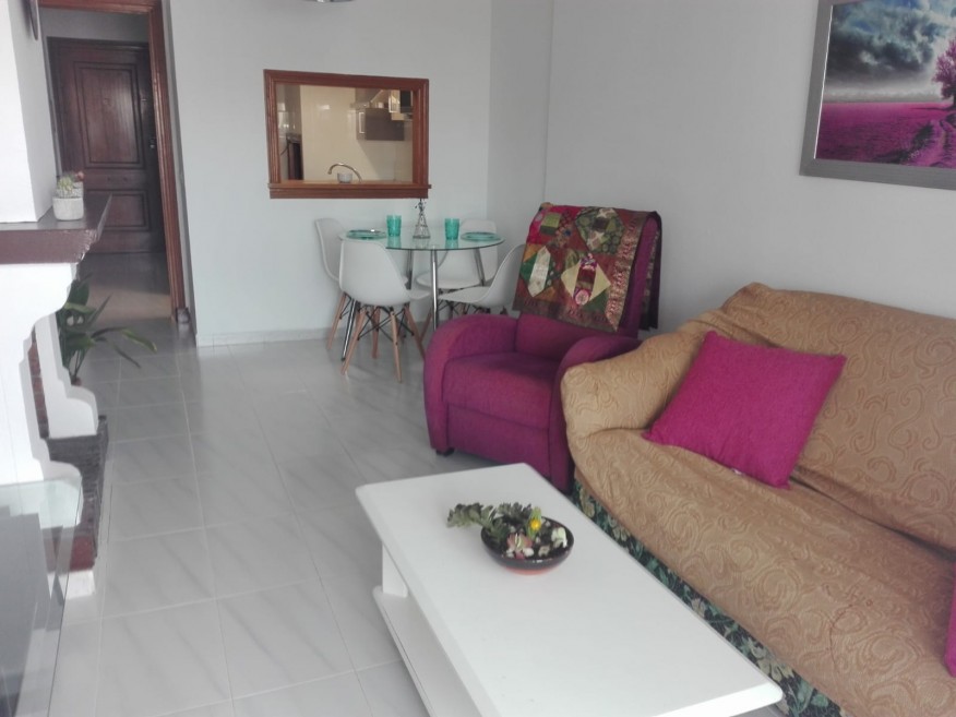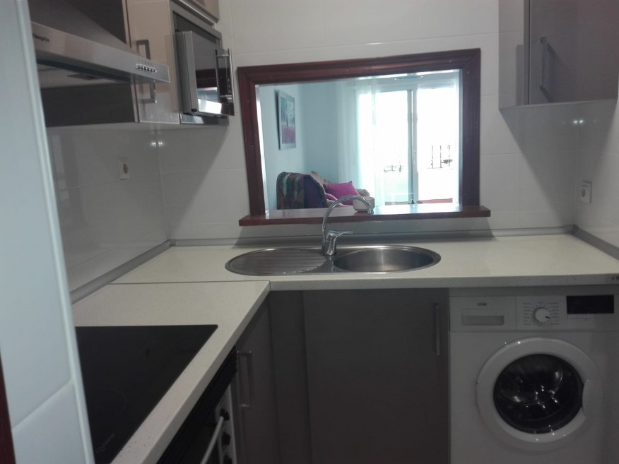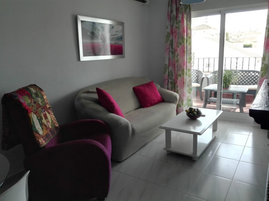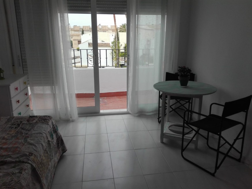 Rent apartment in the best area of Aguadulce, with many services around and 500 m from the beach. 2 km from the marina. Distributed in two floors. With two connecting rooms (for 3 people maximum), two terraces, 1 bathroom, separate kitchen and living room.