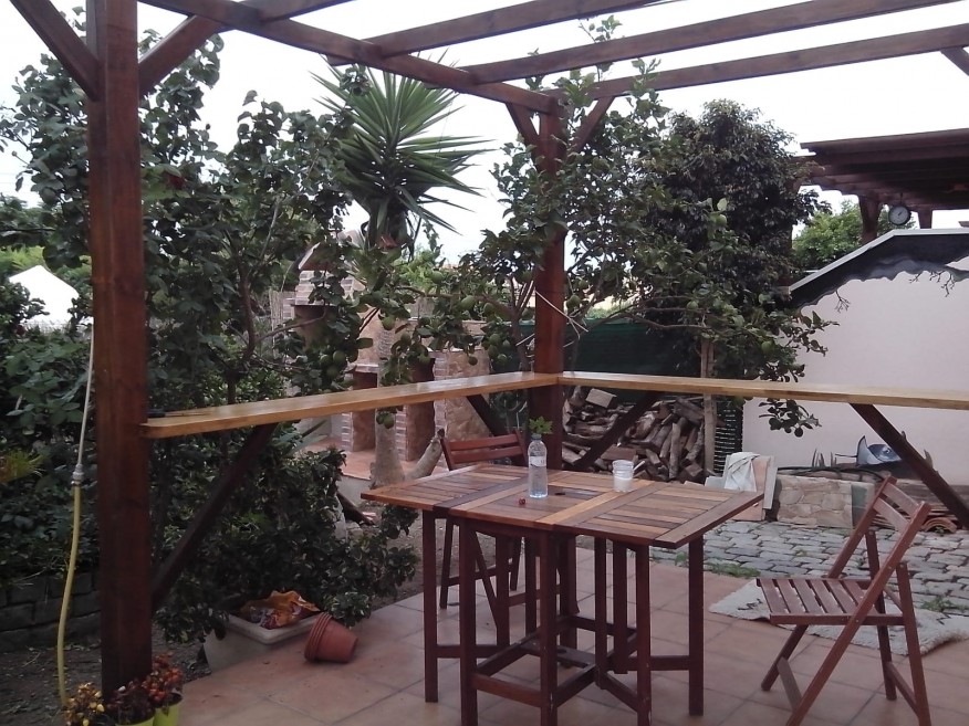 Cozy villa in urbanization 5 minutes from the beach. Modern rustic style with garden- barbecue and terrace with pergola in the back. The four rooms, one are reserved by the owners, are bright and well equipped, one with a single bed and three double beds.