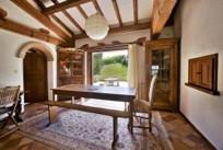 Inside, the villa features a large living area with a fireplace, a separate fully equipped kitchen, and six well-appointed bedrooms: five double beds and six single beds in total. There are five bathrooms, one shower room, and five separate toilets. Additional amenities include a washing machine, dishwasher, oven, freezer, microwave, satellite TV, Hi-Fi system, internet access, and central heating.