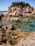 A private path leads down to a rocky creek with its own terrace, while a sandy beach is just a 5-minute walk away.