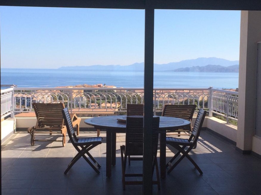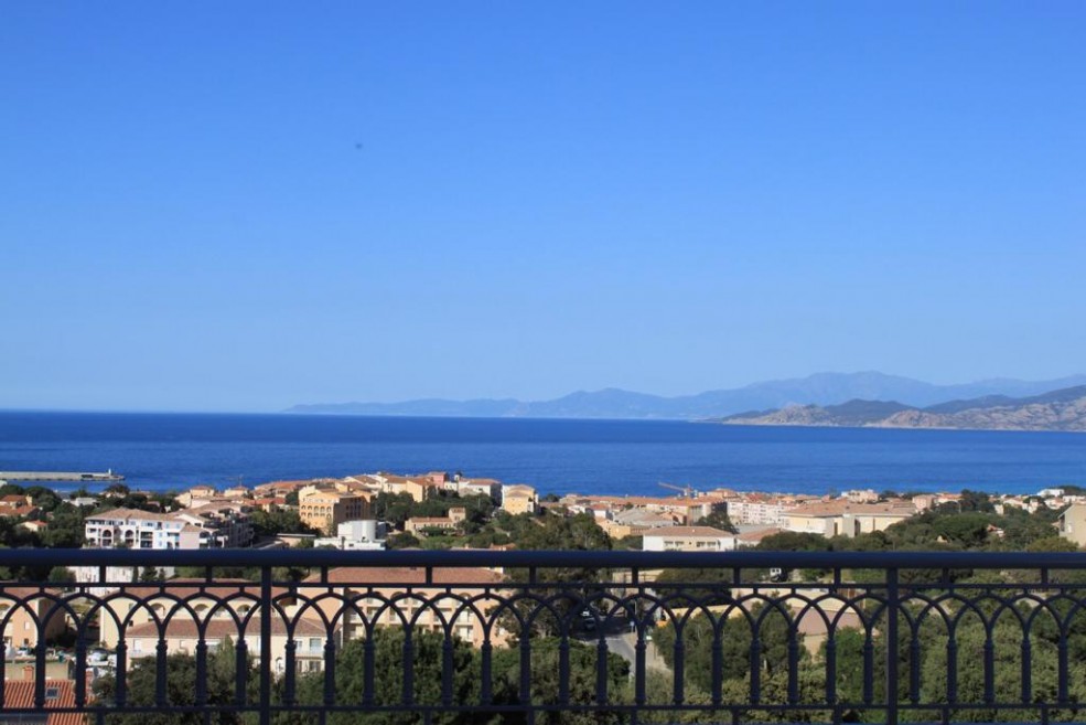 Large sliding glass doors open onto a 40 m² terrace with breathtaking panoramic views of the sea, the port of Île-Rousse, and Cap Corse. The terrace is fully furnished with:
