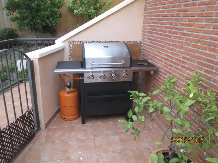 On the Terrace are Gas Barbecue, sun Bed, Table, Chairs and pots with flowers and Lemon Trees.