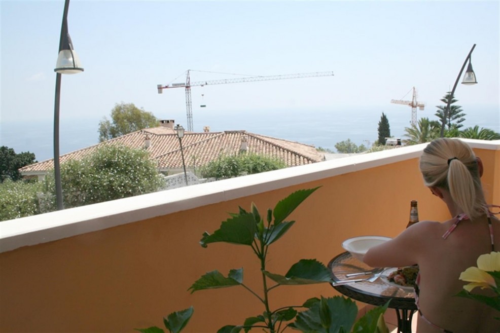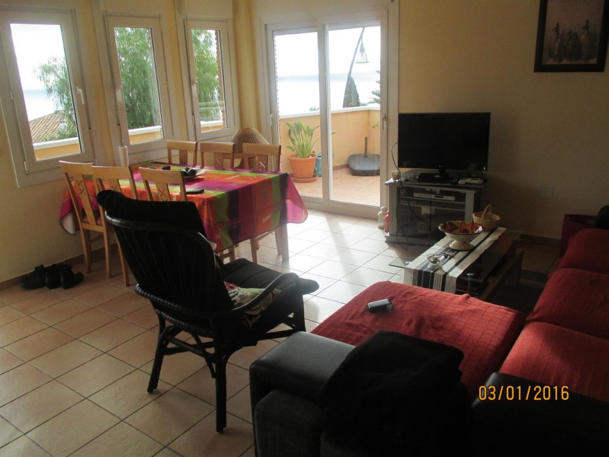 View to Mountains – Coastline and Sea. The apartment is elevated approx 3 meter above a quiet street with available parking space and direct Stair access from street.